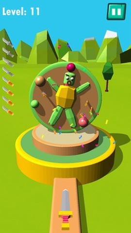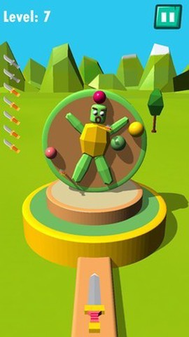 3、转盘中间站着个绿油油的小人,圆头圆脑挺招人喜欢,你得躲着他投,一不小心扎中他,当场游戏结束,连懊恼的时间都不给。