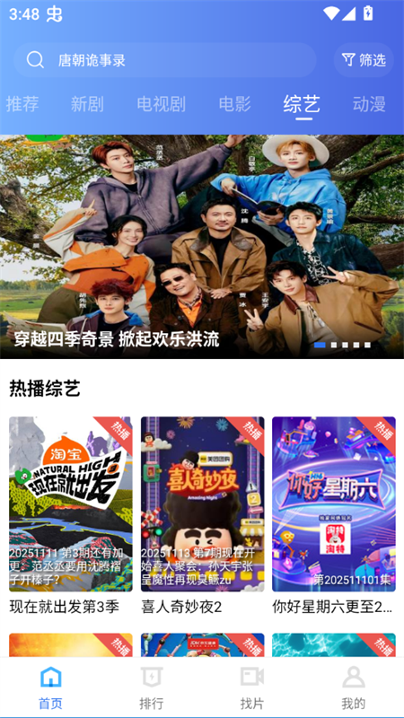 1、大家打开软件进到首页,就能看到分好的各种频道,像是什么新剧、电影、综艺都在这儿排列得整整齐齐。
