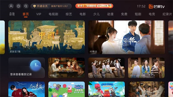 3、安装完在应用列表找到芒果TV大屏版图标,点开用遥控器注册登录就能刷节目了。