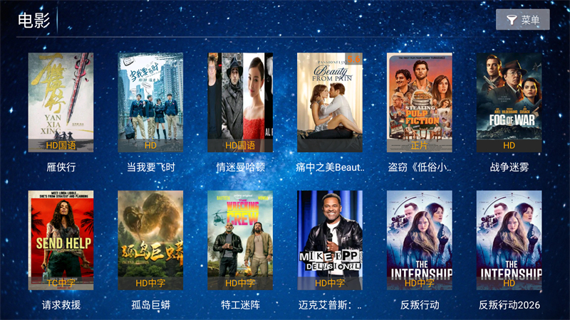 2、支持电视遥控操作,方向键+确认键即可完成搜索、播放、换集。