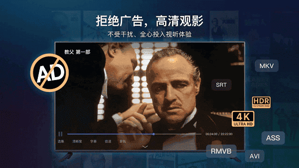 3、内置自研解码引擎,完美兼容两百多种音视频格式,硬解4K HDR原盘毫无压力,同时支持音频直通、倍速播放及外挂字幕加载。