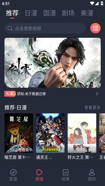 1、打开App首页直接逛分区,新番热门经典随便刷,点进试看几集感受下。