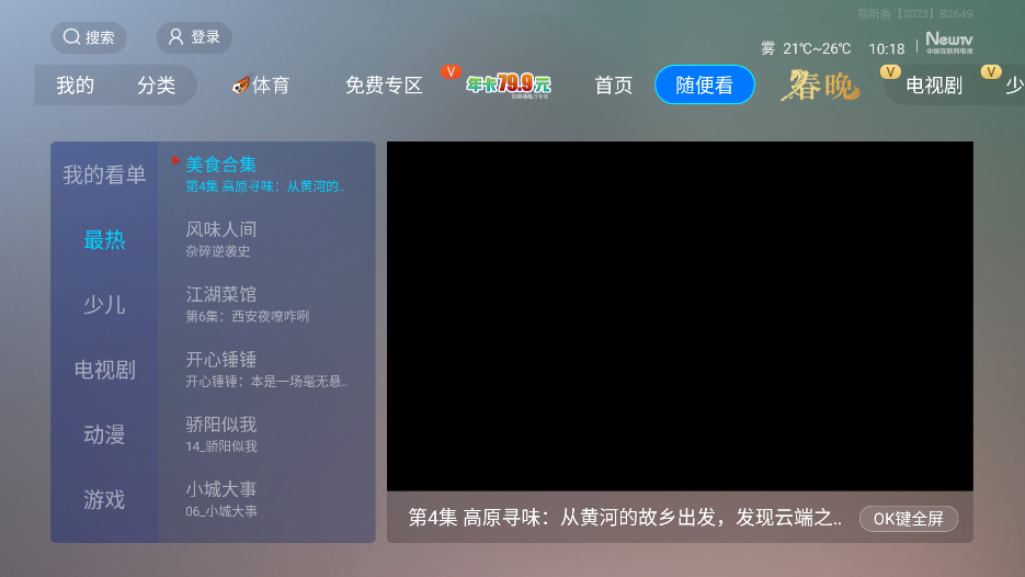 5、登录后能记住你看过的剧、收藏的节目,换设备接着看也很方便,遥控器操作也顺手