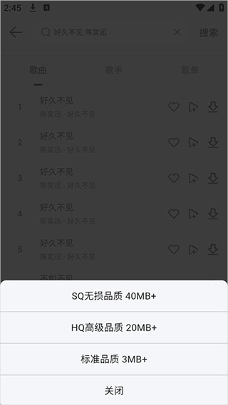 3、下载时会看到不同音质选项,比如标准、高清甚至无损,全部免费任选,按自己需求来就行。