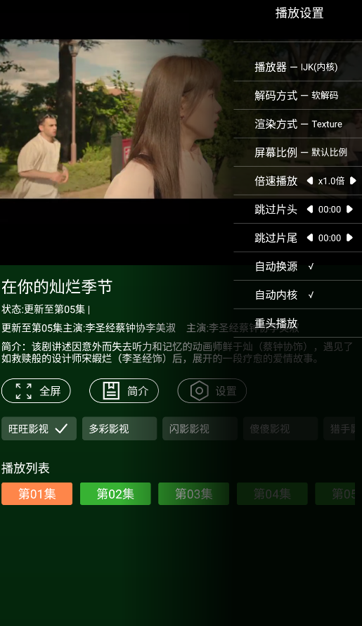小草影视一打开就能直接看片,不用折腾注册账号,也不用忍受烦人的广告。不管是国产剧、美剧、电影、综艺还是动漫,都能通过首页推荐、分类筛选或者搜索快速找到。画质普遍挺清晰,还支持跳过片头片尾、切换播放源、调整播放速度这些实用功能,遇到卡顿或者资源不全的情况,换个源基本就能搞定,整体体验顺手又省心。