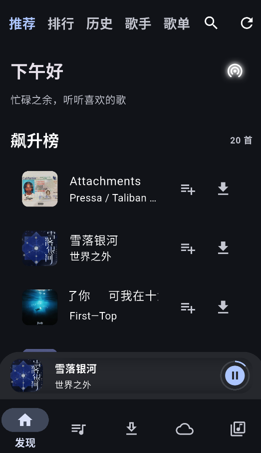 2、下载功能很实在,不限次数,还能自己挑音质档位,喜欢高清就选高码率,省空间就选标准。