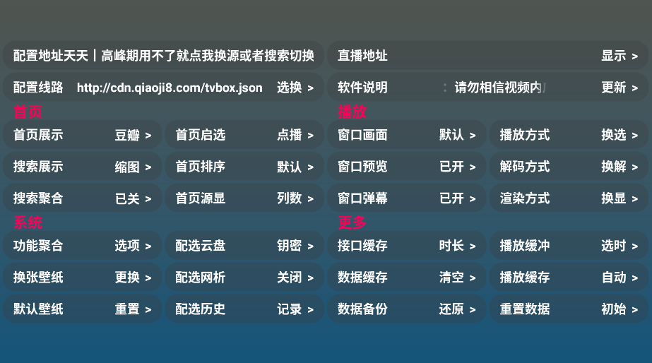 http://cdn.qiaoji8.com/tvbox.json