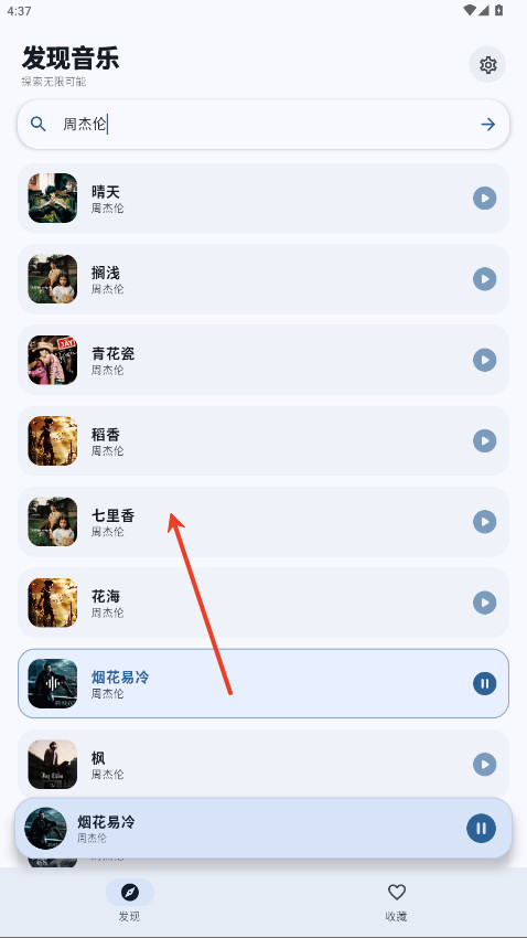 3、从结果列表里挑中想听的那一首,轻轻一点就行