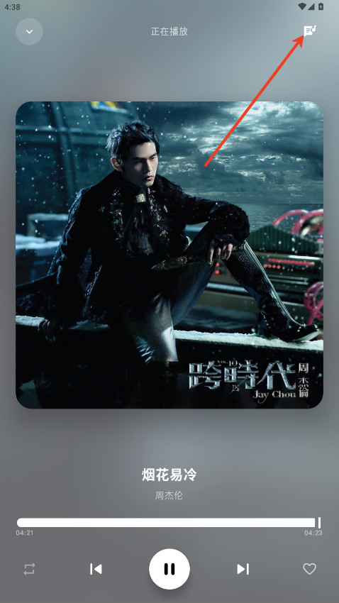 6、想看歌词的话,点右上角那个小图标就能切换到歌词界面