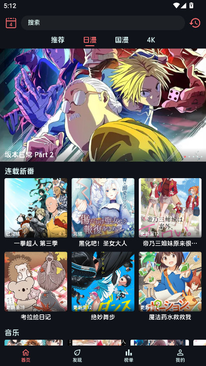 1、装好打开App,首页就会推一些最近热门或者刚更新的动漫,随便点进去就能看。