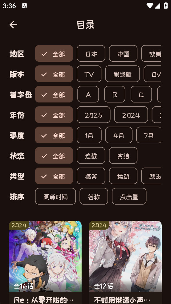 3、更细一点的筛选还能按地区(比如日本、国产、欧美)、版本(国语、日语原声等)以及更新状态(连载中或已完结)来缩小范围,找起来更精准。