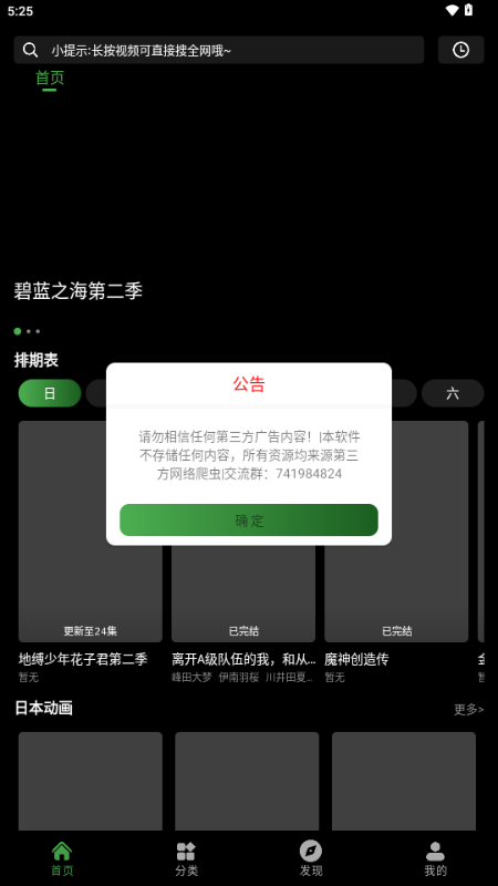 1、启动应用后,首页会展示近期上线的新番排期,一眼就能看到接下来要更新的动画,方便提前安排追番计划。