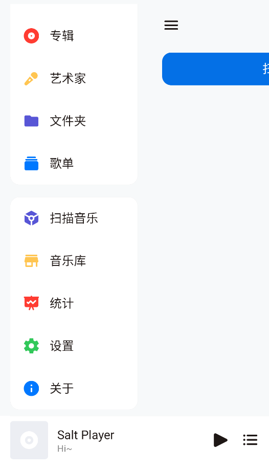 咱们先把SaltPlayer打开,在界面左上角能看到三个横线组成的菜单键,点它一下