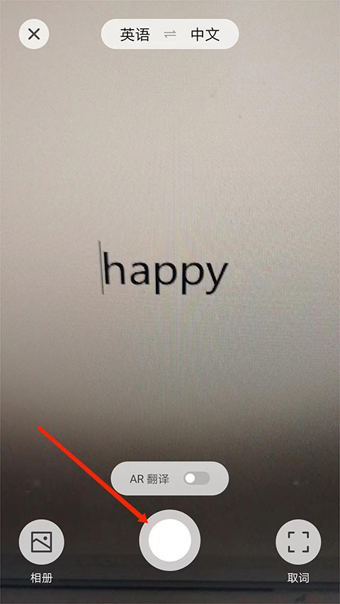2、进入拍照翻译模式后,把镜头对准你想翻译的文字内容,确认画面清晰后,轻按底部中间的圆形快门按钮完成拍摄。