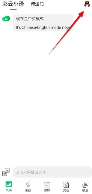 1、启动彩云小译App后,先点一下右上角的个人头像图标。