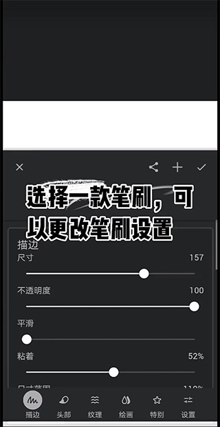 进入创作页面后,底部工具栏有个画笔图标,点开就能看到各种笔刷,想用哪个点哪个