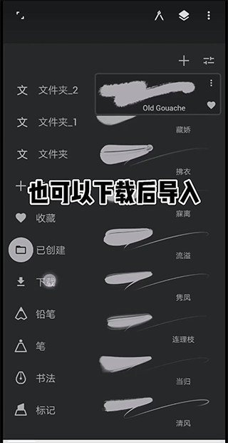 左边还有个下载入口,喜欢的笔刷下载下来,直接导入就能用