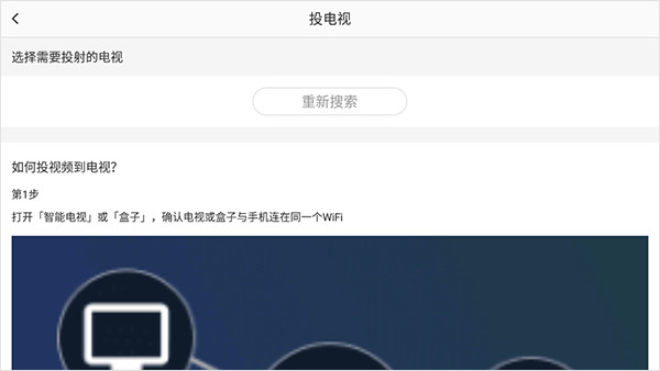 4、前提是手机和电视(或电视盒子)得连在同一个Wi-Fi下,接着在弹出的设备列表里选你的电视,连上就能开始投了
