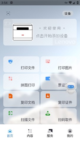 2、进到首页会看到好几个功能入口,比如打印、复印、证件照制作等,新手也能快速找到要用的功能。
