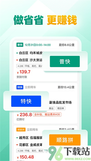 3、运费通过平台结算,交易过程有保障,完成订单后能快速提现,资金周转更安心。