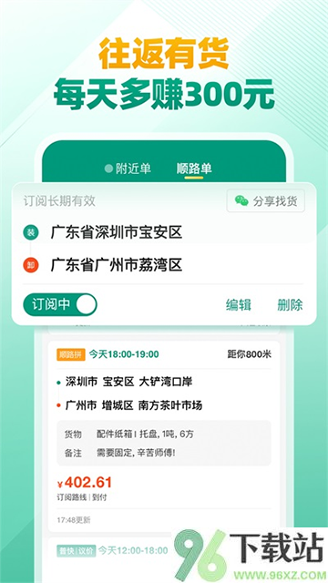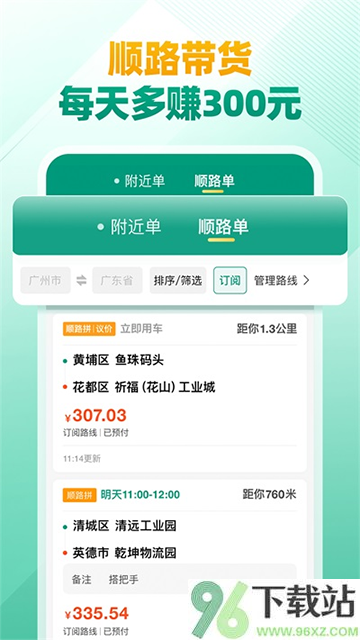 2、可以订阅常用线路,系统会主动推送返程或途中的新订单,基本告别空车回程。