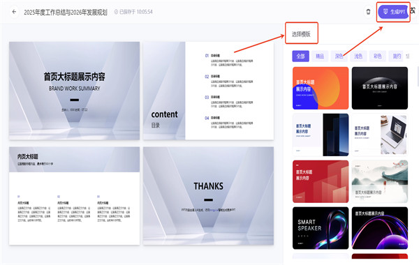 4. 从提供的模板库里挑一个合眼缘的样式,点“生成PPT”就行。