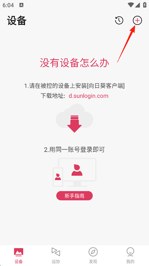 先把手机上的向日葵APP打开,进到主页后找准右上角那个加号按钮点一下。